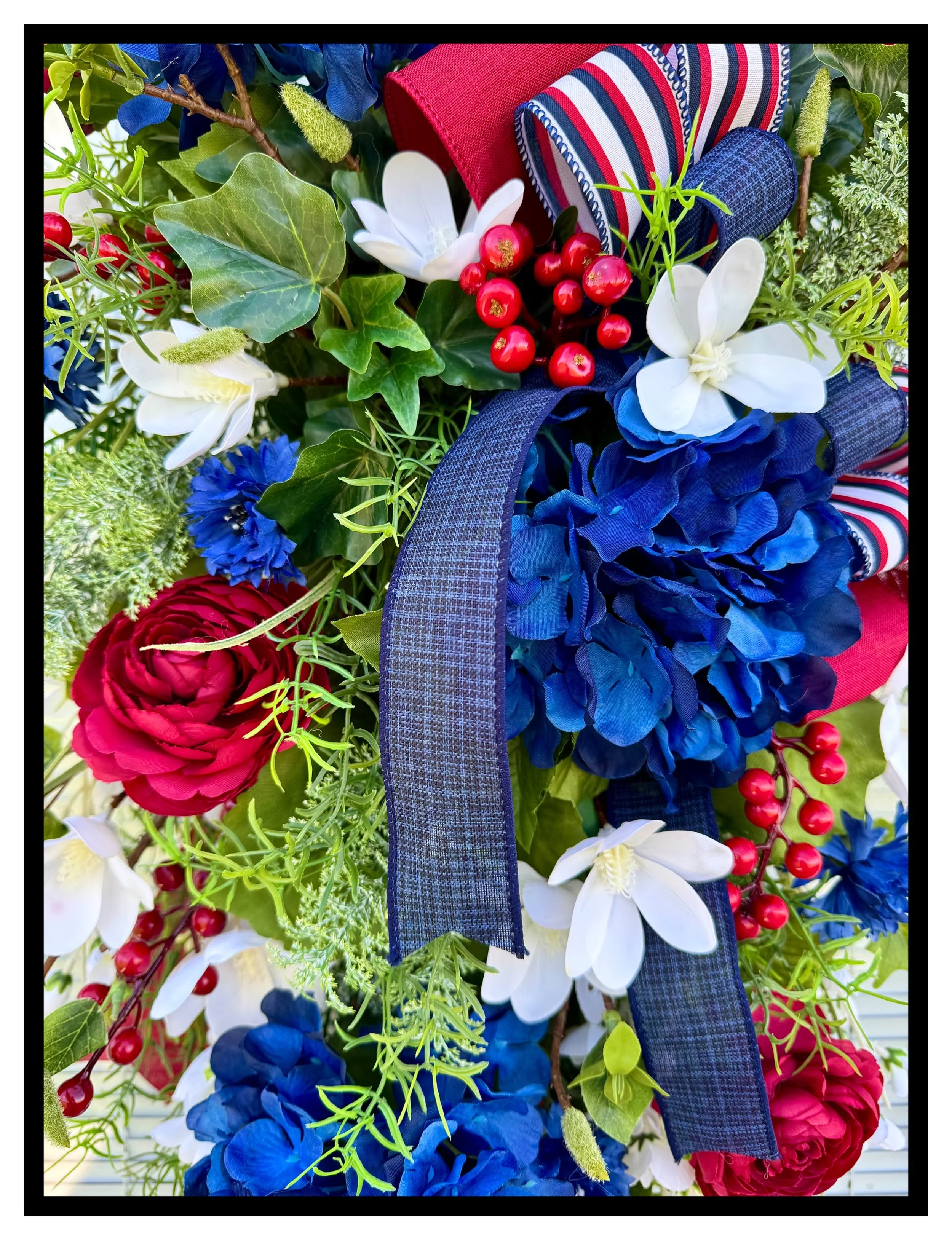Celebrate your patriotic spirit with our American Patriotic Floral Door Swag, an elegant and vibrant decoration that exudes pride and charm.
